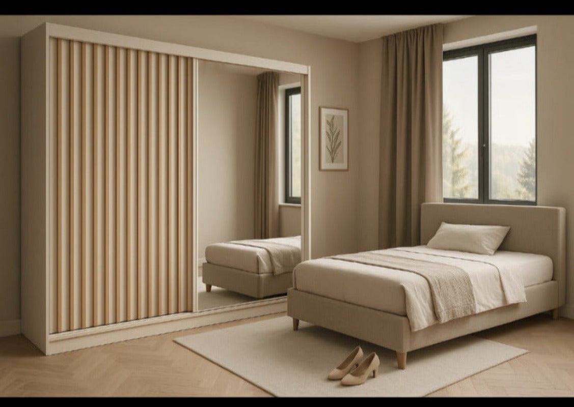 2.03m Interior Configuration: 8x Box Shelves & 1 Long shelf on Left, 1x Shelf & 2 Hanging rails on Right